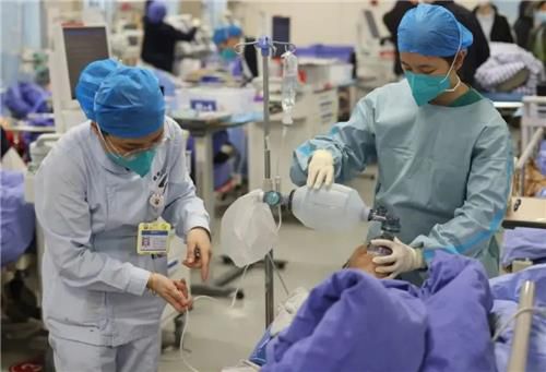 응급 환자 진료하는 난징의 한 병원 의료진 |
