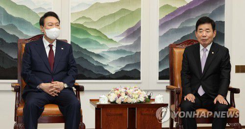 지난해 10월 김진표 국회의장과 환담하는 윤석열 대통령 |