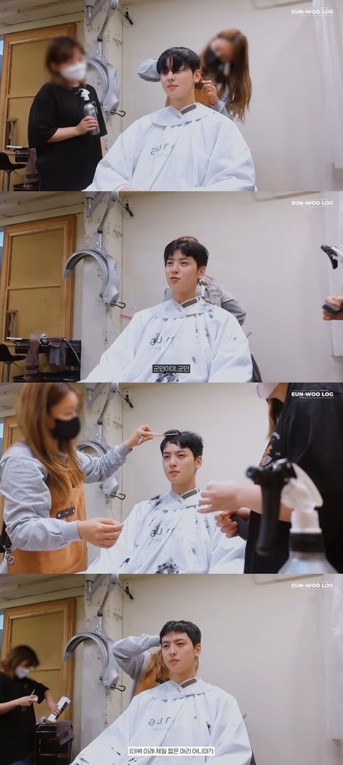 해당 영상 속 차은우는 샵에 도착해 “이 머리카락이 마지막이겠지..사진 하나 찍어놔야겠다”며 셀카를 찍었다.