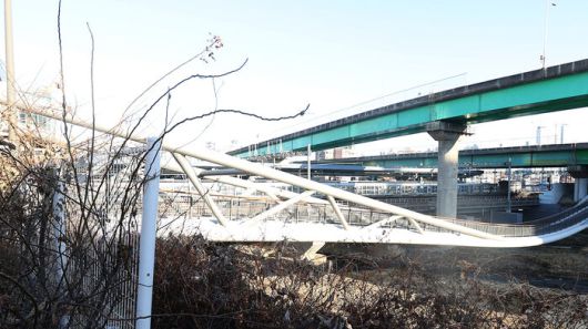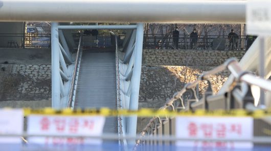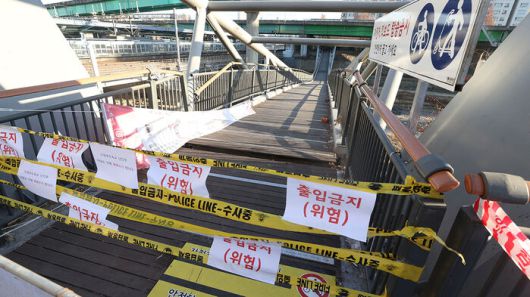 오늘(3일) 오전 서울 영등포구 도림동과 신도림역을 잇는 도림보도육교가 내려앉아 진입이 통제되고 있습니다.