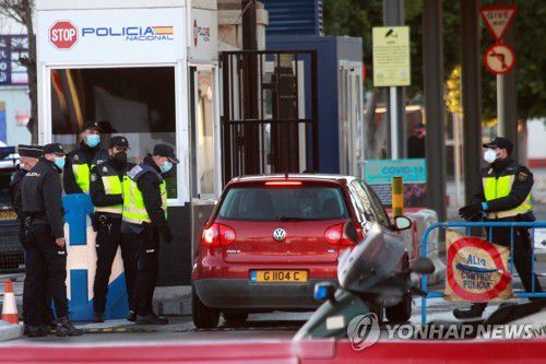 지브롤터로 들어가는 차량 [EPA=연합뉴스 자료사진] |