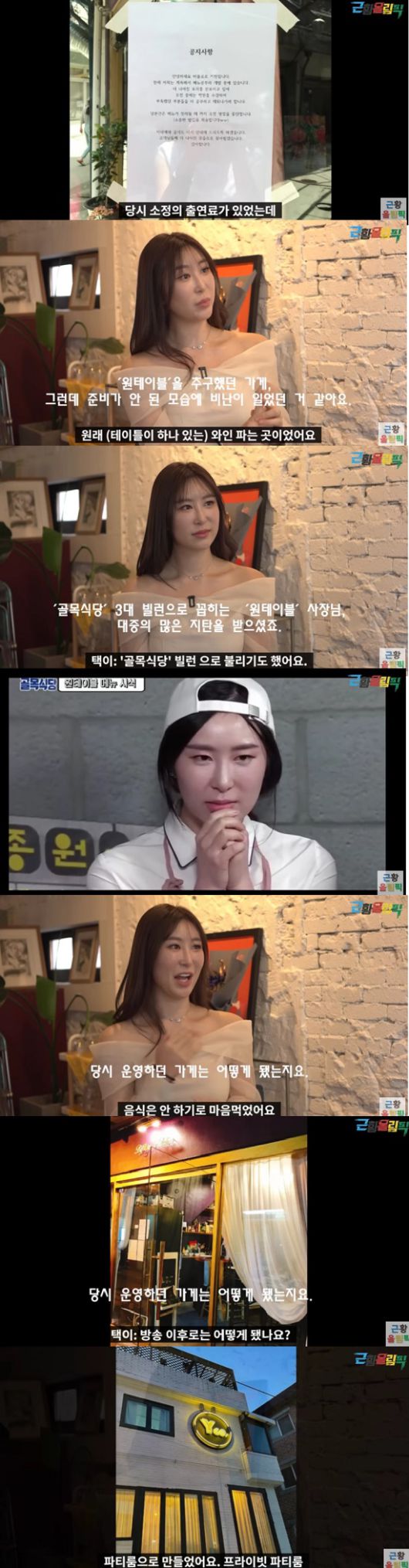 '원테이블 식당' 오픈 계기에 대해서는 "원래 술집이었다. 기본 플레이팅만 나왔었다. 파티룸 개념이었다. 오픈한지 한 달밖에 안됐고 음식을 해야 하나 말아야 하나 고민의 기로에 서있는데 예능이 시작됐다"고 밝혔다.