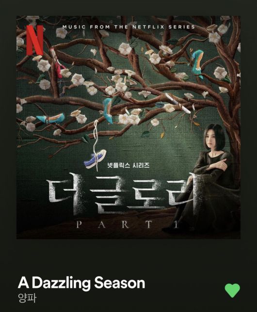 지난달 30일 양파가 참여한 '더 글로리' OST 앨범 파트1이 공개됐다. 그중 5번 트랙 '눈부신 계절'은 이태원클라스의 박성일이 작곡에 참여했고 양파가 노래를 불렀다.