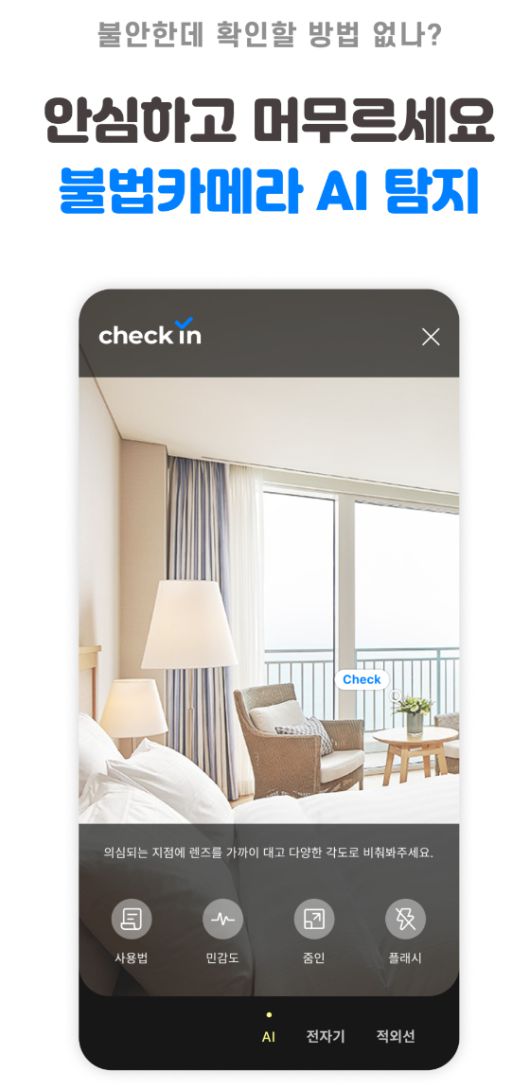 [머니투데이 이유미 기자] [숙박 예약 플랫폼 '체크인', 불법촬영 카메라 탐지 서비스 전면 무료화]