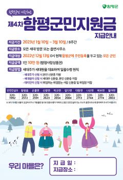 지급대상은 2022년 12월 13일 기준 함평군에 주소를 둔 군민이며, 지급기간은 내년 1월 10일부터 3월 10일까지 8주간이다.
