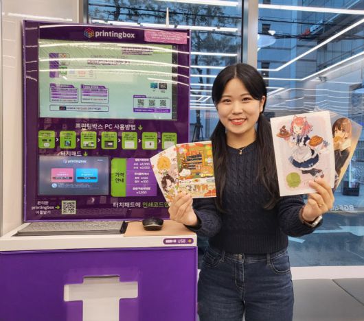 프린팅박스는 무인 출력 키오스크로 PC 또는 스마트폰에 저장된 사진이나 문서를 전용 앱 클라우드에 업로드한 뒤 인근 기기에서 출력할 수 있는 서비스다. 복사, 스캔 등 기본 사무 업무는 물론 연말정산에 필요한 정부기관의 민원서비스도 이용할 수 있다.