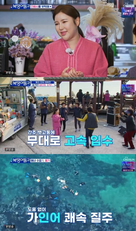 이어 사계마을 해녀들에게 복을 선물하기 위해 떠난 송가인은 해녀들을 만나 “노래하시고 선물 드리려고 보따리로 가져왔다. 노래방 기계도 다 있다”라며 분위기를 한껏 끌어올렸다.