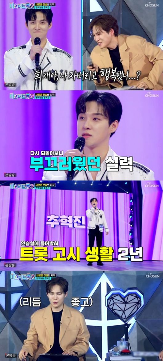 5일 방송된 TV조선 ‘미스터트롯2-새로운 전설의 시작’(이하 미스터트롯2)에서는 시즌1에서 김희재에 밀려 탈락한 바 있던 추혁진이 시즌2에서 다시 재도전을 하는 모습이 그려졌다.