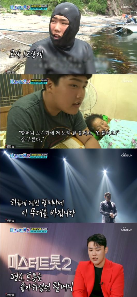 고정우는 "울산에서 올라온 24살 고정우" 라며 구수한 사투리로 자신을 소개했다. 고정우는 부모님 이혼 후 할머니 손에서 자랐고, 할머니를 도와 생계를 이끌어가기 위해 12살부터 물질에 뛰어든 경력이 있었다. 그러나 안타깝게도 할머니는 이미 돌아가셨다고. 고정우는 "할머니께서 하늘에서 보고 계시겠지요" 라고 말하며 노래를 시작했다.