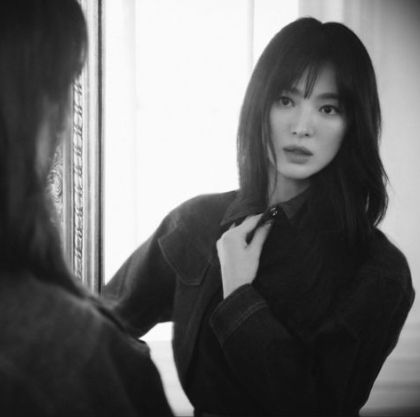 공개된 사진 속에는 송혜교가 거울 앞에 서 있는 모습이 담겨 있다. 송혜교는 자연스럽게 늘어뜨린 헤어스타일과 목까지 꽉 채운 단추, 무표정한 얼굴 등으로 눈길을 끌었다. 특히 최근 공개된 넷플릭스 시리즈 '더 글로리'와 비교해 180도 다른 분위기를 발산하면서 아름다운 미모를 과시했다.