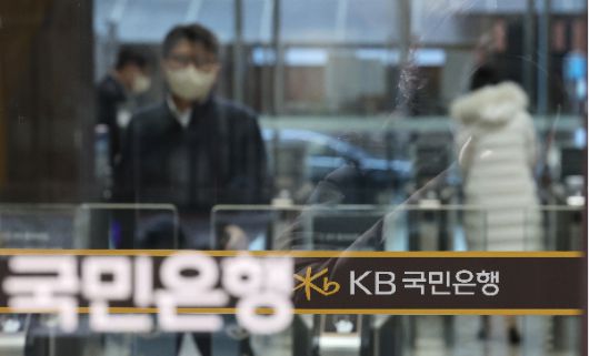 서울 여의도 KB국민은행 로비로 직원 등 관계자들이 출입하는 모습.[사진제공=연합뉴스] |