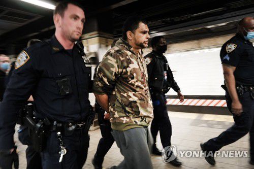 지하철에서 폭행 용의자를 체포한 뉴욕경찰 |