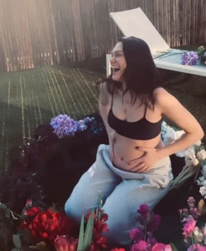 그녀는 글과 함께 임신 중인 다양한 사진도 공개했다. 초음파 사진과 함께 아름다운 D라인의 모습이 팬들의 시선을 사로잡는다.