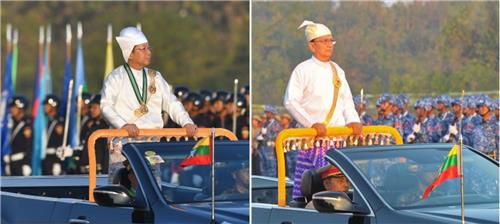 현지 매체 이라와디는 미얀마군 쿠데타 수장인 민 아웅 흘라잉 총사령관의 복장을 제일 문제 삼았다. 미얀마 대통령 입는 전통 예복인 황금색 스웰을 입고 나와 마치 대통령인 양 군대 사열을 받고 국가 유공자에게 훈장을 수여했다는 것이다.