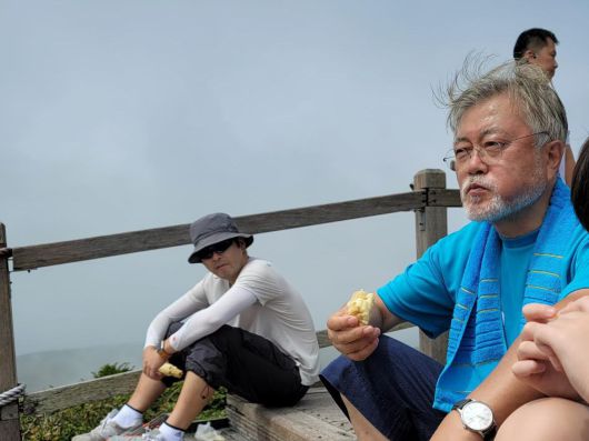 지난해 8월 문재인 전 대통령이 탁현민 전 청와대 의전비서관과 한라산을 등산하고 있다. /탁 전 비서관 페이스북 |