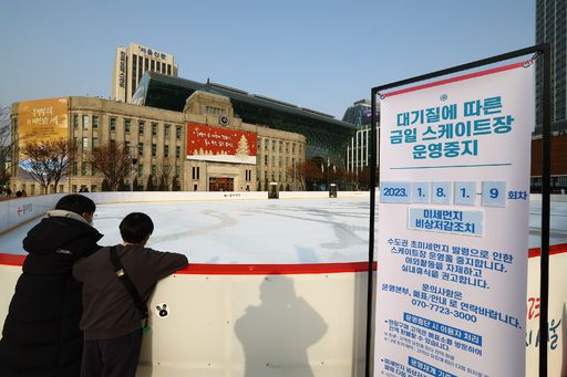 8일 서울 중구 서울광장 스케이트장에 ‘대기질에 따른 스케이트장 운영중지’ 안내문이 게시돼 있다. 초미세먼지와 황사가 뒤섞이면서 서울 등 수도권, 전국 9개 시도엔 이날 오전 6시부터 오후 9시까지 초미세먼지 위기경보가 발령됐고 미세먼지 비상저감조치가 시행됐다. 남제현 선임기자 ⓒ 세상을 보는 눈, 세계일보