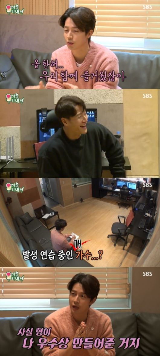 이어 허경환은 "지난 6개월을 뒤돌아보니 형하고 케미가 좋더라"며 "형이랑 있을 때 제일 행복해보이고 시청자분들도 좋아하시는 것 같았다"고 했다. 하지만 김종국은 "근데 수상소감에서 내 얘기를 안 했더라"며 "무조건 했어야 하는 거 아니냐"며 섭섭해 했다.