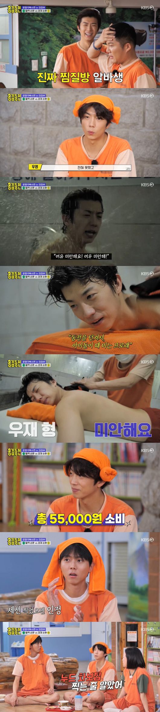찜질방 이발소 머리를 한 우영에 멤버들은 "하루종일 찜질방에 혼자 있으니 진짜 알바생 같다"며 그를 놀렸다. 우영은 "혼자 남겨질 거란 생각을 못했다"며 당황을 표하면서도 찜질방에서 즐거운 시간을 보냈다.