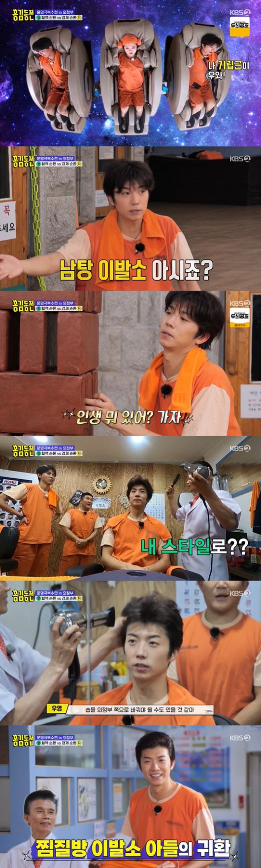 주우재와 김숙, 우영은 찜질방 베개를 이용한 젠가 게임을 시작했고, 치열한 승부 끝에 우영이 패배했다. 댄디한 '아이돌 머리' 고수하던 2PM의 멤버 우영은 혼자 이발소로 향해 "머리를 자를 것은 아니다. 확 달라지게 해 달라"고 요청했다.