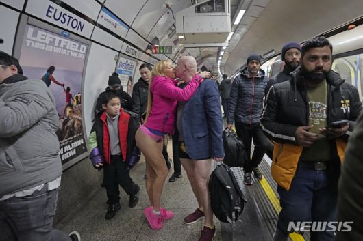 [서울=뉴시스] 류현주 기자 = 8일(현지시간) 영국 런던에서 '바지 벗고 지하철 타기' 행사가 열렸다.