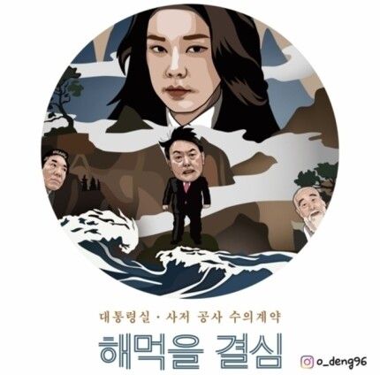 윤석열 대통령과 김건희 여사를 풍자하는 ‘굿, 바이 전 인 서울’에 전시 예정이던 그림. [사진 = 페이스북 갈무리] |