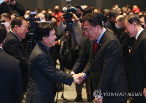 이날 충남 예산군 스플라스 리솜에서 열린 신년인사회에는 정진석 비상대책위원장, 김태흠 충남지사, 홍문표·이명수 의원, 국민의힘 소속 시장·군수와 지방의원 등 500명가량이 참석했다.