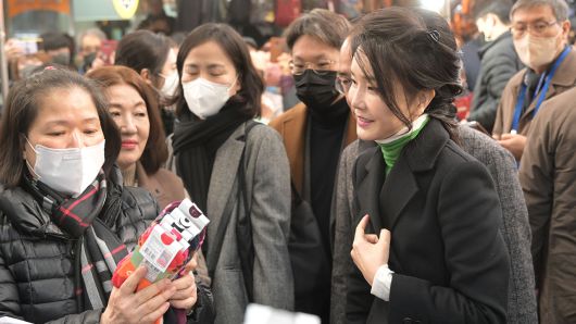 김 여사는 오늘(11일) 오후 대구 서문시장을 방문해 설 명절 준비를 위한 물품 등을 구매하면서 소상공인, 시민들과 새해 덕담을 나눴습니다.