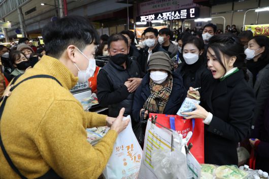 이어서 김 여사는 대구 서문시장으로 이동해 최근 어려움을 겪고 있는 소상공인과 자영업자들을 격려하며 시장을 찾은 시민들과 새해 인사를 나눴다.