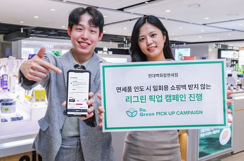 현대백화점면세점은 업계 최초로 면세품 구매 시 고객이 일회용 쇼핑백 수령 여부를 선택하는 ‘리그린 픽업’ 캠페인을 진행한다고 11일 밝혔다. 지난해 시범 운영하면서 고객의 의견, 개선점 등을 반영해 본격 시행에 나선 것이다.