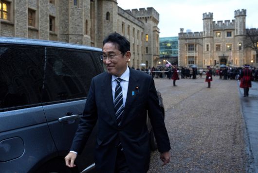 기시다 후미오 일본 총리가 11일(현지시간) 영국 런던에서 리시 수낙 총리와의 방위협정 체결 후 런던탑을 떠나고 있다. [로이터] |