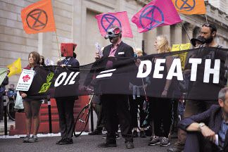 영국 런던에서 기후변화 대응 관련 활동가들이 시위를 하는 모습. [AP] |