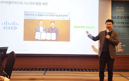 시스코 간담회에서 발언하는 네이버클라우드 박원기 APAC 대표 |