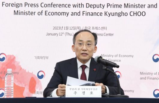 추경호 부총리 겸 기획재정부 장관이 1월 12일 오후 서울 중구 한국프레스센터에서 열린 '외신기자 간담회'에서 모두발언을 하고 있다. / 사진제공= 기획재정부(2023.01.12) |