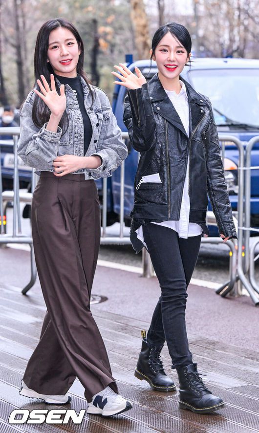 [OSEN=박준형 기자] 그룹 우아(woo!ah!) 우연과 나나가 13일 오전 서울 영등포구 여의도동 KBS신관에서 진행된 KBS 2TV ‘뮤직뱅크’ 리허설에 참석해 포즈를 취하고 있다. 2023.01.13 / soul1014@osen.co.kr