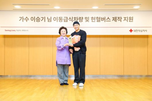 이승기는 13일 재난구호 활동 지원을 위한 이동급식차량과 혈액 부족 문제 해소를 위한 헌혈버스 제작 지원금 5억 5천만 원을 대한적십자사(회장 신희영)에 전달했다.