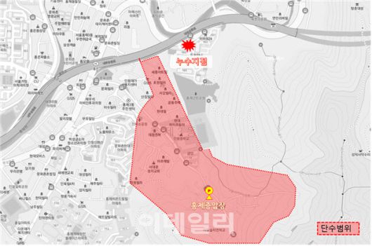 [이데일리 양희동 기자] 서울시 상수도사업본부는 13일 서대문구 세검정로 유원하나아파트 앞 상수도관 파열(구경 300㎜)로 누수가 발생됨에 따라 긴급 누수복구 작업중이라고 밝혔다. 원활한 복구를 위해 불가피하게 인근 고지대 일부 지역에 단수를 실시할 예정이다. 이에 따라 이날 오후 11시부터 다음날 오전 4시까지 약 5시간 동안 서대문구 세검정로 300가구가 단수 조치 예정이다.