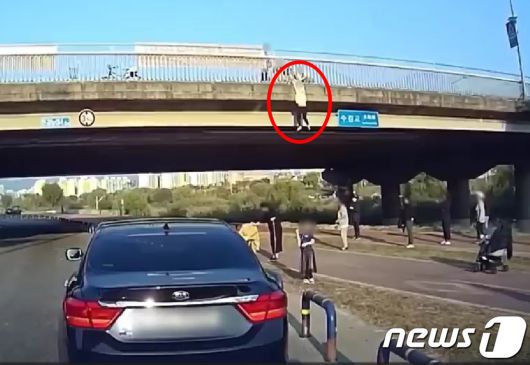 아내 말은 진짜였다. 차량 통과 높이 3.5m의 수침교 난간에 20대 여성이 매달려 있었던 것. 여성이 떨어지지 않도록 다리 위에서는 시민 2~3명이 붙잡고 있었다.