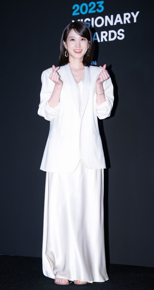 강내리 기자: 박은빈 씨의 맑고 순수한 이미지에 가장 잘 어울리는 색이 하얀색임은 분명하다. 하지만 색깔만 믿고 가기엔 루즈핏 재킷에 롱스커트는 역시 무리수였음을….