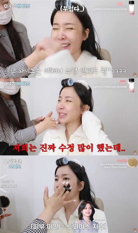 메이크업 아티스트는 이에 "차이점이 있다. 그때 (크레용팝은) 신인이었잖냐. 신인들이 수정을 많이 보는 편"이라며 "예뻐보여야 한다는 것 때문에 틈만 나면 수정을 본다"고 이야기해 눈길을 끌었다. 또 피부 좋은 연예인으로는 트와이스의 지효가 꼽혔는데 메이크업 아티스트는 "커버할 게 별로 없다. 잡티도 없다. 피부는 타고나야 하는 것 같다"고 감탄했다.