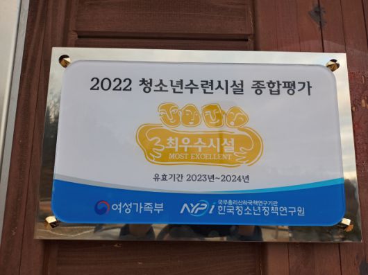 청소년수련시설물에 대해 안전·위생점검 및 운영 전반에 대해 종합적으로 평가하는 것으로 이번 평가에서 100점 만점에 100점을 받아 시설 등 모든 면에서 최고임을 입증받았다.