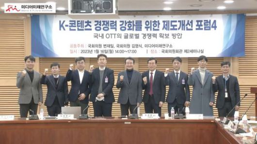 'K-콘텐츠 경쟁력 강화를 위한 제도개선 포럼4' 참가자들이 기념사진을 촬영하고 있다. [사진출처=미디어미래연구소 유튜브] |