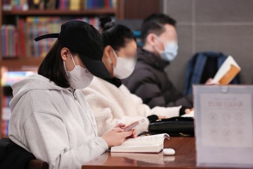 마스크 쓰고 책 읽는 시민들. [사진 출처 = 연합뉴스] |