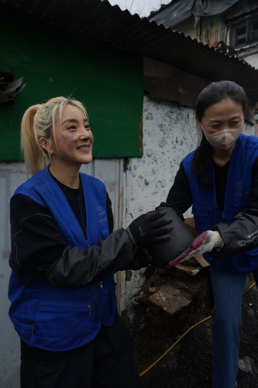 가수 바다 씨가 서울 노원구 백사마을에서 '그린하트 연탄 나눔 봉사'를 진행했다.