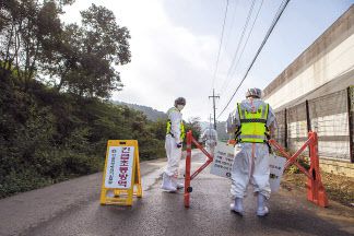 29일 경기도 파주시 문산읍의 한 양돈농장에서 아프리카돼지열병(ASF)이 발생한 가운데 방역당국이 출입을 통제하고 있다. [연합] |