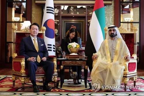 윤 대통령은 또 "UAE가 제28차 유엔기후협약 당사국 총회(COP28) 의장국으로서 기후위기 대응을 주도하고 있다"며 "COP28에서 효과적인 기후위기 극복 방안이 도출되기를 기대한다"고 말했다.