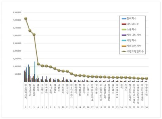 1위, 아모레퍼시픽 브랜드는 참여지수 706,549 미디어지수 745,060 소통지수 655,431 커뮤니티지수 804,182 시장지수 937,469 사회공헌지수 252,871이 되면서 브랜드평판지수 4,101,561로 분석됐다. 지난 12월 브랜드평판지수 5,424,793과 비교해보면 24.39% 하락했다.