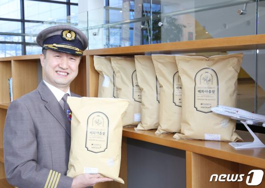 (서울=뉴스1) = 20년째 쌀 나눔 활동을 이어가고 있는 아시아나항공 사내 봉사동아리 '운항본부 봉사단'의 이준서 선임기장(A350 안전운항팀)이 18일 서울 강서구 본사에서 '매화마름 쌀'을 들고 기념 촬영을 하고 있다. (아시아나항공 제공) 2023.1.18/뉴스1photo@news1.krCopyright ⓒ 뉴스1. All rights reserved. 무단 전재 및 재배포 금지.