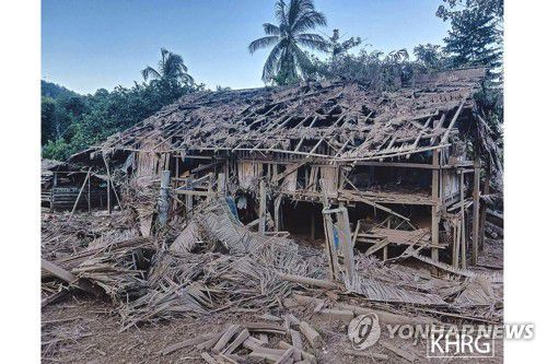미얀마군 공습으로 파괴된 가옥 |