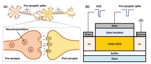 장진 경희대 교수팀과 임태빈 석사과정 학생이 인공 시냅스 특성을 내는 산화물 반도체 박막트랜지스터(TFT) 소자를 개발했다. 이번 연구는 사람의 뇌 신경을 모방한 차세대 반도체인 뉴로모픽 칩에 응용할 수 있다.