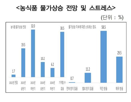응답자의 57.0%는 식료품비 지출액 증가를 경험했으며, 74.0%가 외식 물가 상승을 경험한 것으로 조사됐다.